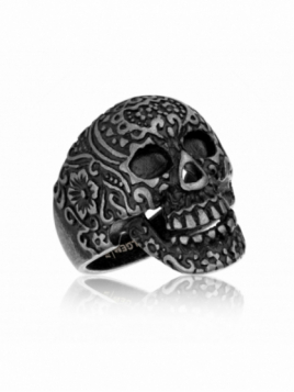 Detailed Black Steel Ring FINE MATERIALS: Our jewelry are designed by craftsmen in our workshop in Vicenza, Italy, then shipped to our atelier, and meticulously attached by hand – resulting in a true piece of art HYPOALLERGENIC: Our jewelry is made from Surgical Grade 316L Stainless...
