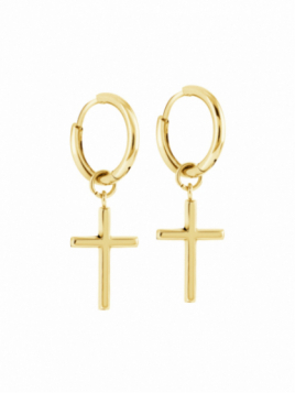 Gold Ip Polished Cross Hoop Earrings FINE MATERIALS: Our jewelry are designed by craftsmen in our workshop in Vicenza, Italy, then shipped to our atelier, and meticulously attached by hand – resulting in a true piece of art HYPOALLERGENIC: Our jewelry is made from Surgical...