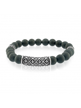 Black Ip Stainless Steel Cross Design Onyx Bead Bracelet