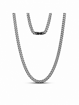 5mm Black and Steel Cuban Link Necklac