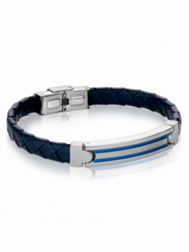 Black Ip Matte Stainless Steel Anchor Navy Blue Leather 8.2''...