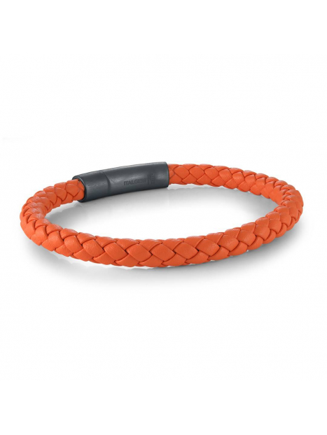 SLB639-7.5 (GUN-IP-S.STEEL PUSH-CLASP ORANGE-LEATHER 7.5"-BRACELET)