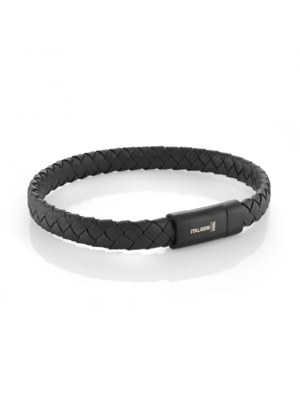 SLB509 (BLACK-IP-S.STEEL MATTE-CLASP 8MM BLACK-LEATHER 8"-BRACELET)